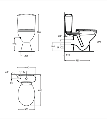 – реверсивно тоалетно казанче 3/6 литра със странично водоподаване